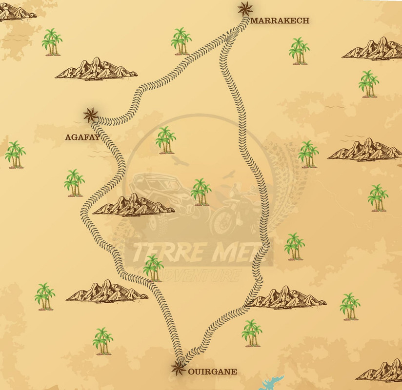 Petit-déjeuner puis parcourez les pistes du désert d'Agafay et ses collines arides, libérez la puissance de vos machines